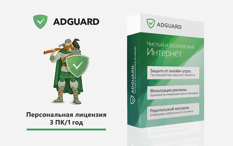 Интернет-фильтр Adguard. Персональная лицензия (3 ПК/ 1 год) [Цифровая версия] (PC)